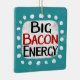 "Big Bacon Energy" is a cute text design in blue with black and red text, along with a white accent shape and white textured whimsical dots surrounding it.