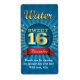 Here's a perfect label to put on a bottle of water or other favour for guests as a special thank you. This sweet sixteen thank you label is reminiscent of a concert or circus poster. A medallion encloses the golden words "Sweet 16" atop of a deep blue burst background. The word "Water" is written above and the birthday girl's name stands out below in the bright red banner. Add a special message below. Makes a water bottle a fun and useful giveaway. Available with matching products.