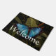 Blue Morpho butterfly shows off his brilliant, blue wings ( 5 - 8 inches span) while resting on foliage at Butterfly Wonderland. Photo by Ruth Jolly. The text can be customised to meet your needs.
