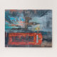 A lovely puzzle of London cityscape in abstract expressionism style. The view includes one famous vintage red phone booth and the Big Ben watch tower.
