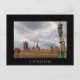 Postcard of the Big Ben, the Houses of Parliament and a typical streetlight in the city of London, the capital of the United Kingdom with a black border and the text: 'London'.
