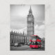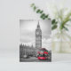 A red double decker bus passing in front of the Big Ben clocktower in London England.