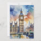 This postcard features a watercolor portrait of Big Ben in London, England.