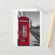 Red Telephone Box and big ben on Parliament square. black and white with the red box