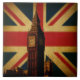 Big Ben Tile features a vintage style tower on top of a aged Union Jack Flag. This is a digital collage made by Graphic Divine.