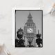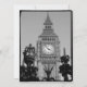 Officially called St. Stephen's Tower, but known the world over as Big Ben (the name given to the bell inside) in black and white with the crown and sceptre from the wrought iron gate surrounding Westminster Palace.