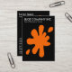 A business card design with a bold ink blot motif sure to grab attention. Company details on the front with name, title and other contact details on the back with a smaller blot motif