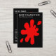 A business card design with a bold ink blot motif sure to grab attention. Company details on the front with name, title and other contact details on the back with a smaller blot motif