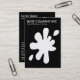 A business card design with a bold ink blot motif sure to grab attention. Company details on the front with name, title and other contact details on the back with a smaller blot motif