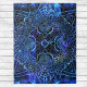 This jigsaw puzzle design features an electric blue geometric fantastical shape with stars and clouds against a celestial background. The design is a kaleidoscope-style design, and although abstract, it's similar in some ways to sacred geometry and galaxy images. The vivid blues and dramatic geometry add a unique and boho touch to your clothing, bags, cases, and decor.