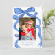 Big Bold Bright Blue Bow Christmas Photo Holiday Card