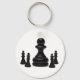 Big black chess pawn surrounded by four little chess kings isolated against the white background. Taking bigness for greatness.