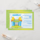 You'll invite friends to have a bouncy good time with this vibrant blue, green and orange polka dot bounce house invitation. Featuring a fun inflated bouncy house castle full of colourful balls that have spilled over on the outside. A very cute illustration that's perfect for your child's bouncy themed party.
