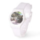 This watch features a darling cat named Big Boy that was abandoned in the wild by his family, trapped, neutered and released. He is seen in this picture lying on a table in our backyard where we feed him and where he gets his daily doses of love and attention. Who can resist this adorable tabby cat with a pink nose, white collar and one cropped ear tip. This Big Boy watch is perfect for every cat lover and especially those with a burden for the stray cats in our world.