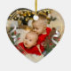 Celebrate sibling love with this heart-shaped ornament featuring a golden frame adorned with holly, pine, and ribbons for a festive touch. The front showcases your memorable photo, while the back displays a heartfelt brother-and-sister quote on a warm brown background. Personalise with your photo, name, and year to create a meaningful keepsake for the holiday season.