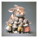 A happy rabbit is surrounded by four little rabbits as they all embrace in a group hug.