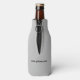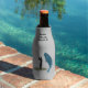 A silhouetted fisherman stands on a river bank with a big fish dancing on his line in the foreground in the simple, four-colour design on this bottle cooler. All text can be easily customised.
