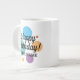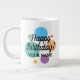 Big cheerful colours Birthday mug with custom name. Fun drinkware for men and women. Modern typography design with coloured confetti dots. Add your own personalised name. Cool surprise Birthday party gift idea for friends, family, dad, father, husband, uncle, grandpa, brother, grandfather, stepfather, stepdad, boss, co worker, mum, wife, colleague, teacher, coach, kids etc. Extra large jumbo size cup with fun print. Very big oversized 20oz size. Largest on Zazzle.