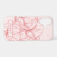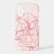 This phone case features an oversized line art drawing of tulips in coral on a pink grunge background with a personalized name. Original art from Dogwood & Thistle.