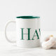 This is a large white coffee cup with a green inside and the word Hawaii written on it in green. It is a very beautiful and elegant city