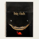 This black-dominant design has an illustration of a big scary shark illustration which follows a little red fish. You can customise the default "big fish" text.