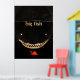 This black-dominant design has an illustration of a big scary shark illustration which follows a little red fish. You can customise the default "big fish" text.