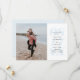 With a bold date in a light blue colour and lots of space for custom text with all your wedding details, this save the date card also has a place for a single vertical engagement photo. The back is a coordinating beige cream colour with stripes.