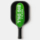 Unique and fun black and green custom-printed personalised pickleball paddle with huge oversize pickle illustration picture and "This is a Big Dill" funny pickleball joke quote, a perfect saying a different design that will get attention on the court, and your name and phone number contact information is printed right on it so you don't lose your place or your padddle.