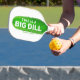 Unique and fun custom-printed personalised pickleball paddle with huge oversize pickle illustration picture and "This is a Big Dill" funny pickleball joke quote, a perfect saying a different design that will get attention on the court, and your name and phone number contact information is printed right on it so you don't lose your place or your padddle.