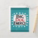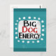 "Big Dog Energy" is a cute text design in blue with black and red text, along with a white accent shape and white textured whimsical dots surrounding it.