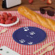 Why not add a touch of fun to your party and start with this blue paw print plate. The strong blue colour will stand out on a white table cloth and the prints are a sharp and clear design. You could have a blue and white dog party theme and create something a little different! You can also alter the white footprints to another bespoke colour just click on the edit design link and choose a background colour from the left.