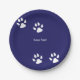 Big Dog Paw Prints on Blue Paper Plate