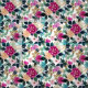 This floral is all about big bold lush dreams, balanced in hues of deep greens and navy with pops of gold and fuchsia.