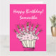 Big extra large Birthday card for women, personalised with name. Sweet cupcake Birthday card with burning candle lights. Personalizable wishes and girly candy pink background colour. Giant XL greeting card with cup cake design.