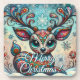 Big Eye Christmas Reindeer Folk Art Personalised Coaster