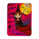 Big Eye Halloween Witch Girl in Stripes Black Cat Magnet