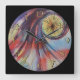 Startling backward clock with striking abstract design in deep colours of red, yellow, blue and purple. Cheerful strong colours, exciting with a touch of mystery and fear. The original painting was created in watercolors by Katherine Foltuz. Great gift - or decor for your own home - for a time challenged person. The hour numbers arranged counter-clockwise! We cannot turn back the hands of time, but we can do a bit of make-believe. Could be for someone who wishes to turn back to the "old days" or "better days," too.