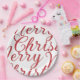 Big Fancy Red Script Merry Christmas Paper Plate