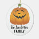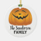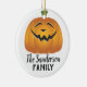 No Halloween tree is complete without a fun and cute ornament bearing your family name! Quality ceramic ornament features an adorable Jack o'Lantern on the front. Personalise the back with your family name or any custom text. Give your family and friends something to admire when they ooh and ahh over your Halloween tree.