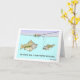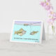On the front of this card is a cartoon drawing of two fish; a father fish and his youngster. As a practical joke, the impish young fish is trying to coax his dad into biting onto a fishing lure. A funny card to give to dad on Father's Day or his birthday.