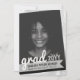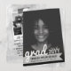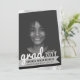 This modern graduation party invite design features a bold sketched/scribbled 'grad' script in white, tilted at a stylish angle at the bottom of the layout matched with simple typography on a black gradient overlaying a personalised photo of the graduate.