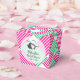 Take Out style party favour box with a lady in her Derby hat on the side with your message against a background of hot pink, green and white diagonal blocks of stripes. A fun way to thank guests for coming to your Derby themed bridal shower or change the wording and use for a birthday party or any occasion. Dimensions: 2" wide x 2" long x 2.75" high. MATCHING items in out store.