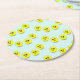 Big head chick on blue round paper coaster