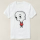 Odd looking little cartoon boy with an incredibly large head, black eyes and prickly hair sporting a red shirt and black shorts. Original digital cartoon art by Taylor Addams.