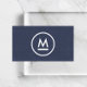 Big Initial Modern Monogram on Navy Blue Linen Business Card