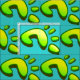 A cool illustration of a large footprint in vibrant gradient lime green with a dark grey drop shadow on a cheerful, summery tranquil turquoise background.