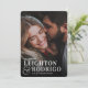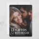 Announce your wedding date with these bold, modern typography-based save the date cards. Design features a full bleed single vertical or portrait orientated photo, with your names overlaid in white lettering joined by an oversized ampersand. Personalise with your wedding date and location, and add additional details to the back if desired.