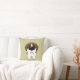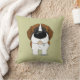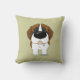 Cute big nose St. Bernard featured on a khaki coloured throw pillow.
