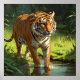Big Orange Tiger in Jungle Wildlife Painting Poster