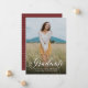 This simple and classic graduation announcement features a large vertical photo and the word "graduate" in script. The coordinating backer can be customised with your choice of a school or favourite colour (click the "customise" button, select "back" and then "select a background colour").